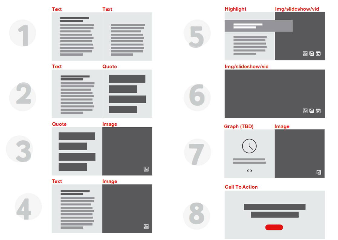 Our team was given 5 months to replatform several sites from Convio CMS, rebuild and rearchitect the theme to an Episerver CMS, and incorporate in-progress rebranding design elements into the overall design. This required a lot of rapid iterations and quick turnarounds internally, my team was on point to synthesize this convergence of three different product streams: (a) being a voice in the ongoing rebranding of the organization, (b) refining the site for updated business requirements, and (c) translating into wireframes for the front-end engineering team to produce as block modules. This required thinking about quick sprint-based solutions that emphasized scalability, customization, content distribution and flexibility as we iterated and incorporated continuously developing upstream productions.