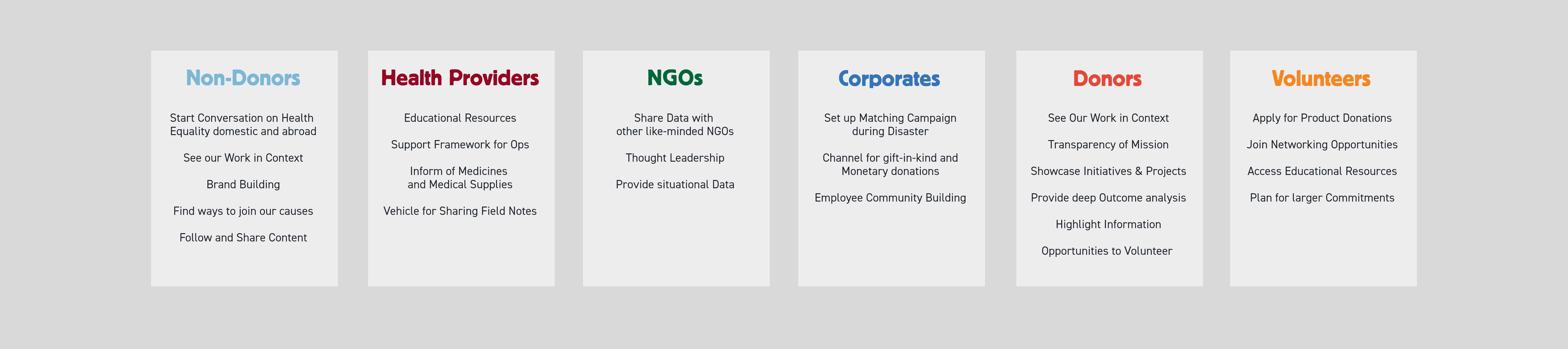In order to give the development team enough lead time, we rapidly conducted the interview process, journey mapping, and persona building. This involved a divide-and-conquer strategy for the team-- which included a few internal volunteers at this point-- to conduct. In all, we gathered enough insights from our board (internal stakeholders) and a few donor volunteers within the span of a eight business days. We creating detailed journey maps to visualize user interactions and pain points, and developed user personas to empathize those specific user needs and behaviors.